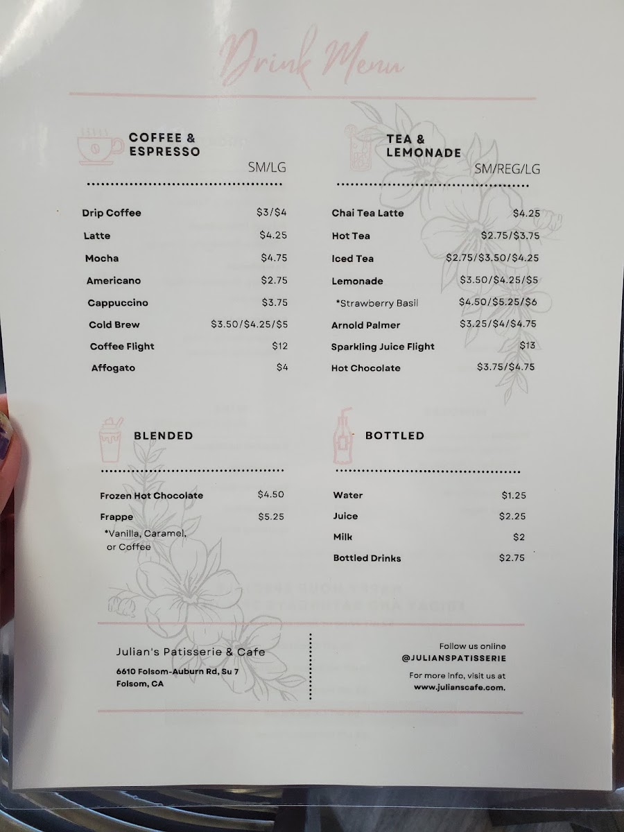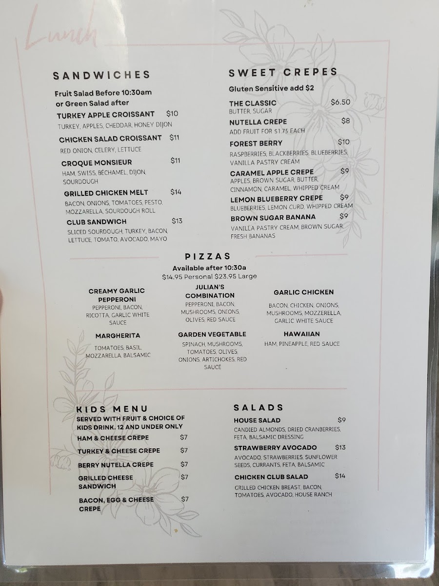 Julian's Patisserie and Cafe Menu