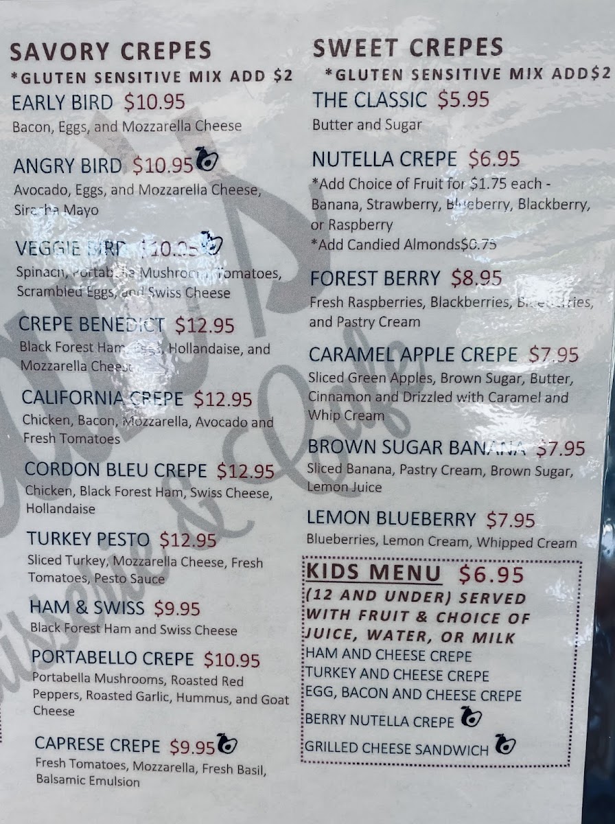 - Savory Crepes: Options like the Veggie Bird Crepe and Crepe Benedict elevate the dining experience.